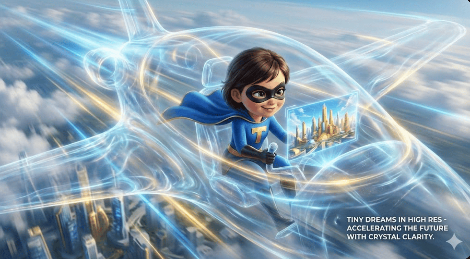 The clearer and more compelling your image, the faster the journey to success! This inner clarity allows you to knock down one tiny challenge after another in rapid light-speed succession. Tiny dreams in high res, 24/7/365 about where her invisible jet is heading -allowing her to whoosh through the air from point A to point B in no time! Tiny loves vivid imagination and crystal clarity because she knows that’s how to accelerate the future. Her heightened sense of purpose and clarity of vision allows her to detect and act on tiny hunches that most people don’t even see.